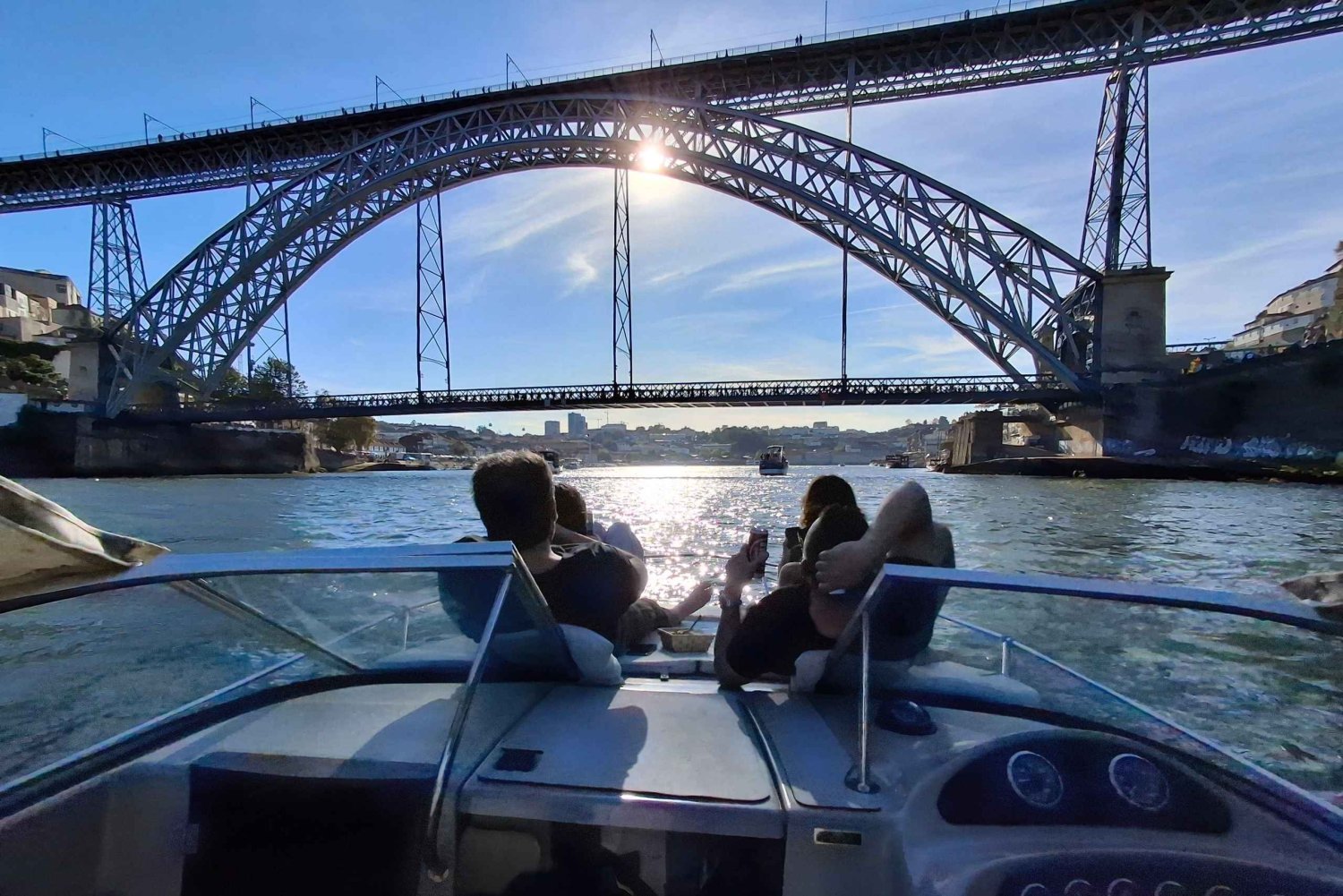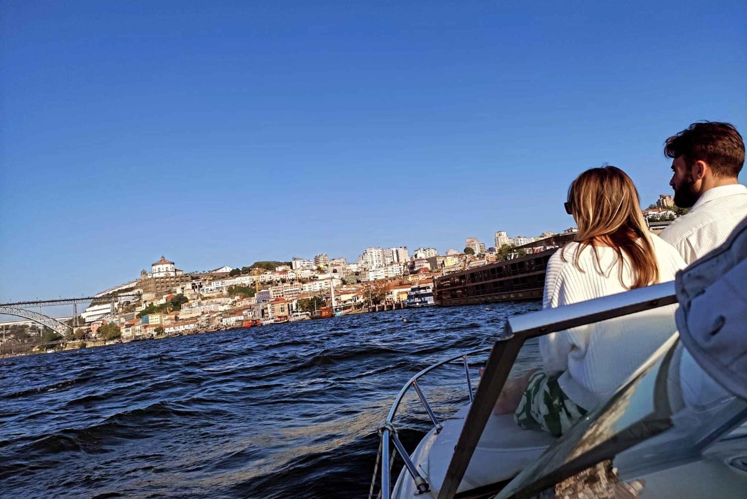- Vom Boot aus siehst du ikonische Orte in der Stadt Porto und V.N. Gaia