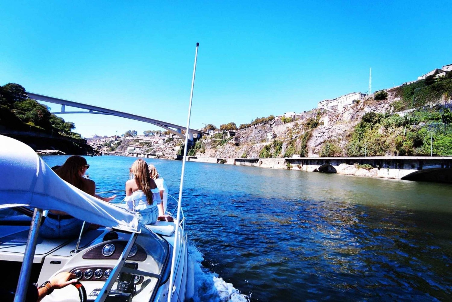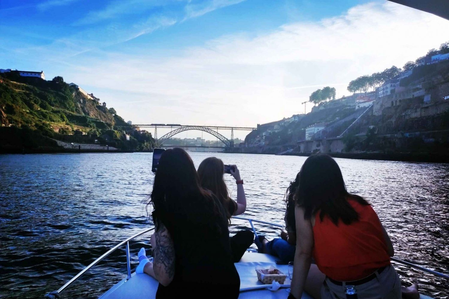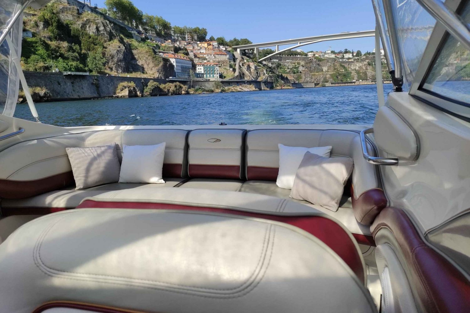 Vom Boot aus kannst du Orte wie Afurada, Ponte da Arrábida, Palácio de Cristal, Alfandega Building, Ribeira, Portweinkeller, Serra do Pilar, Torre dos Clérigos, Muralha Fernandina, die mythische Ponte D. Luís, Ponte Infante D. Henrique, Ponte D. Maria Pia und Foz do Rio Douro sehen.