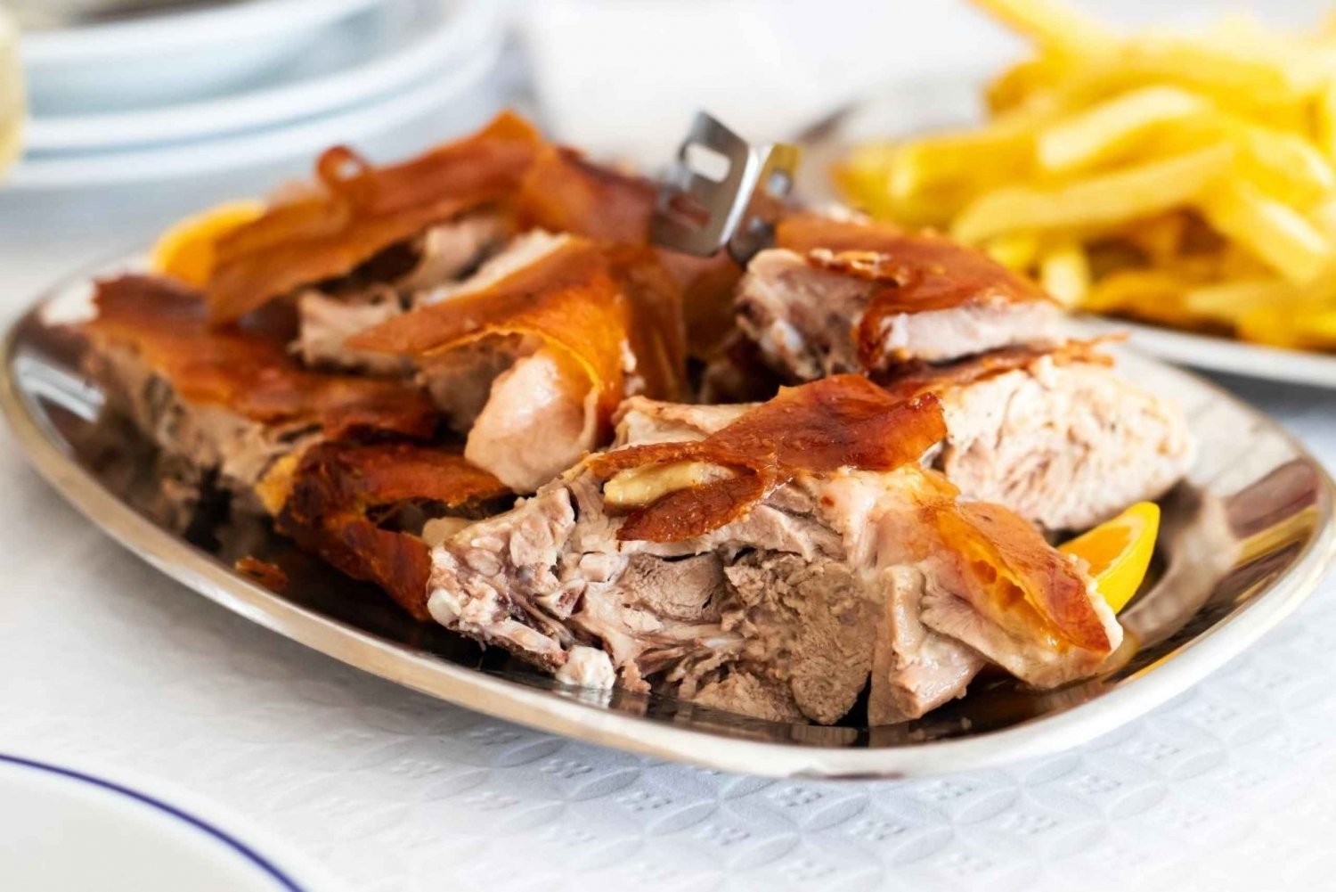 In Coimbra angekommen, hast du Zeit für ein köstliches portugiesisches Mittagessen. Genieße lokale Spezialitäten wie bacalhau à moda de Coimbra (Kabeljau) oder leitão (gebratenes Spanferkel).