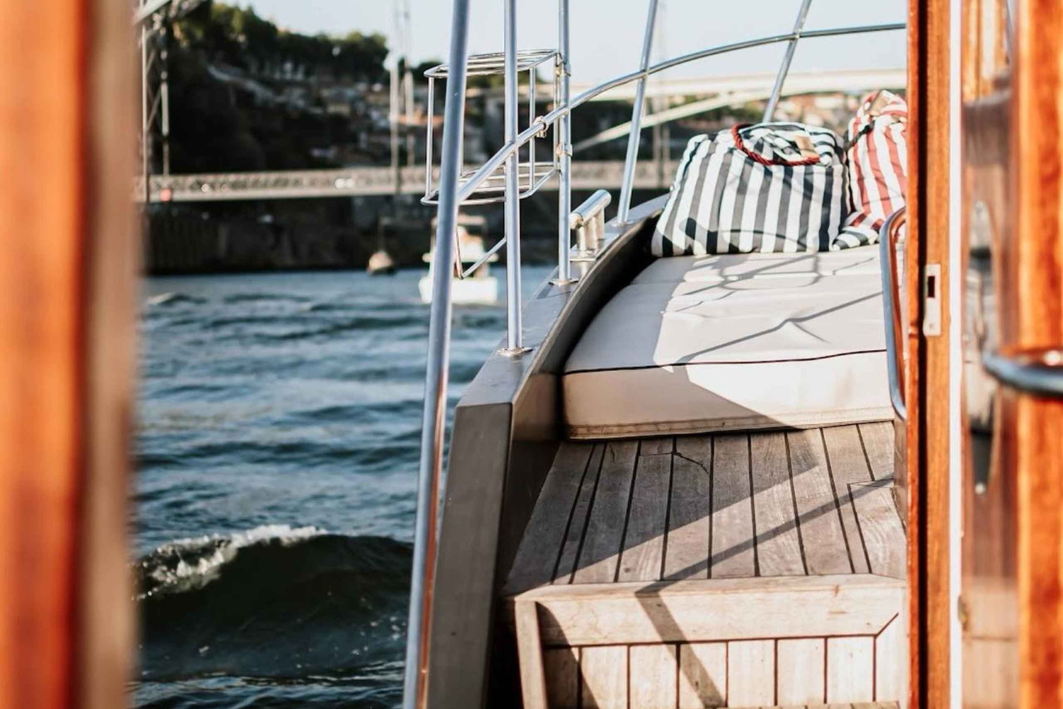 Upptäck Porto och Vila Nova de Gaia från vattnet på en lyxig yacht. Glid längs floden Douro, från Luiz I-bron till Atlanten, och njut av oförglömliga vyer.